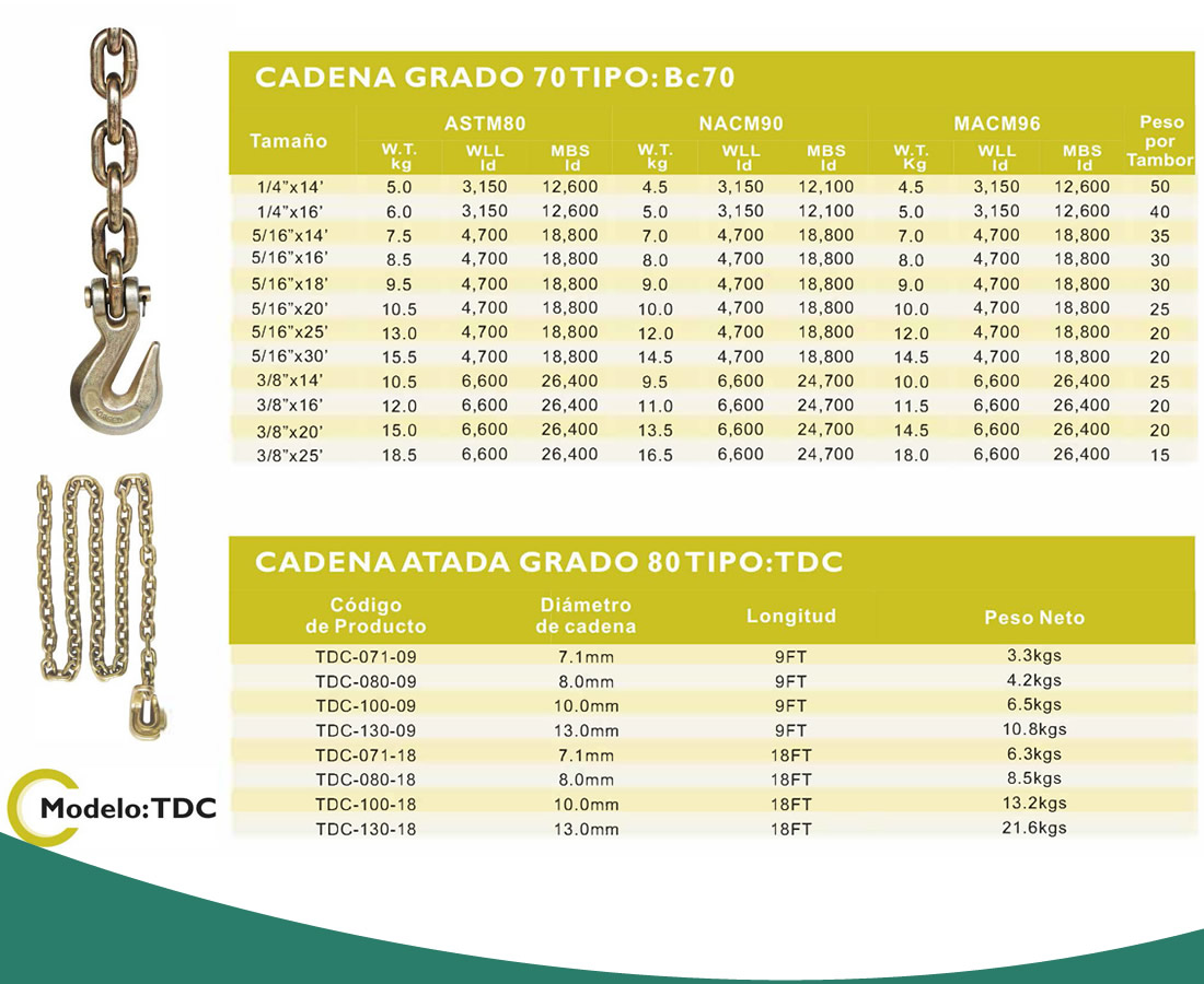 Cadena de grado 70 y atada de grado 80