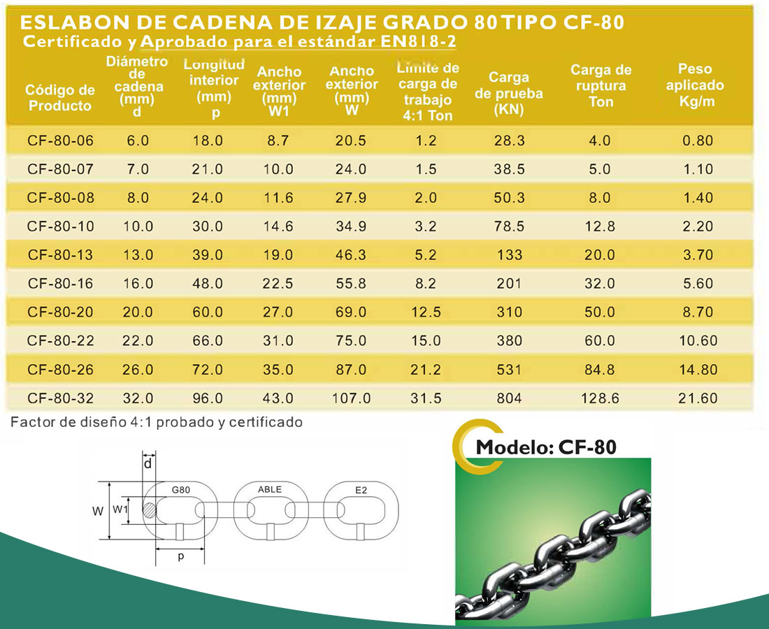 Eslabón de cadena de izaje tipo CF-80